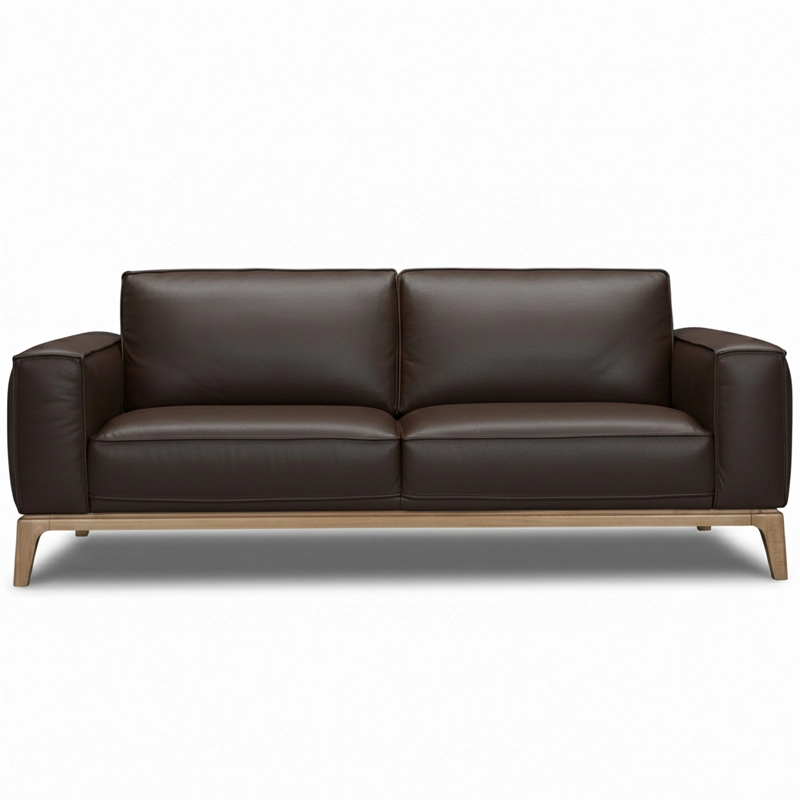 Le résultat est un canapé aux proportions parfaites et au confort incroyable. Ici nous avons des coutures en passepoil, une base et des pieds en chêne massif et de superbes cuirs pour le recouvrir... Regardez le profil du canapé pour voir les finitions...