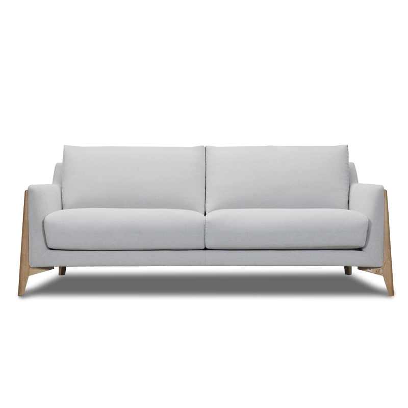 Découvrez notre canapé en tissu Ailey, une base moderne et des pieds en bois massif pour un contraste de matières bois et tissu très réussi!